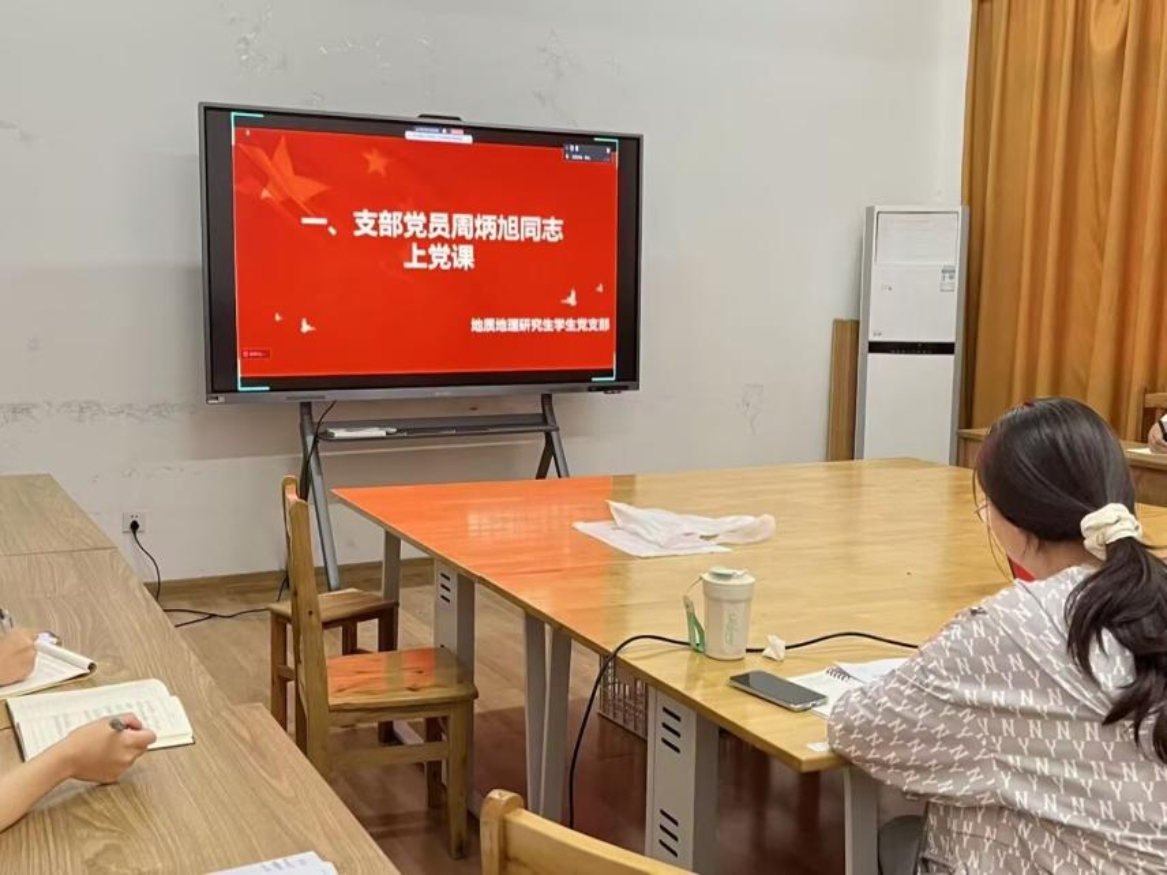 2025年5月29日,地质地理研究生党支部书记周炳旭在地学楼407为党支部党员讲授了一堂题为“以伟大自我革命引领伟大社会革命——学习习近平总书记关于党的自我革命的重要思想”的专题党课。