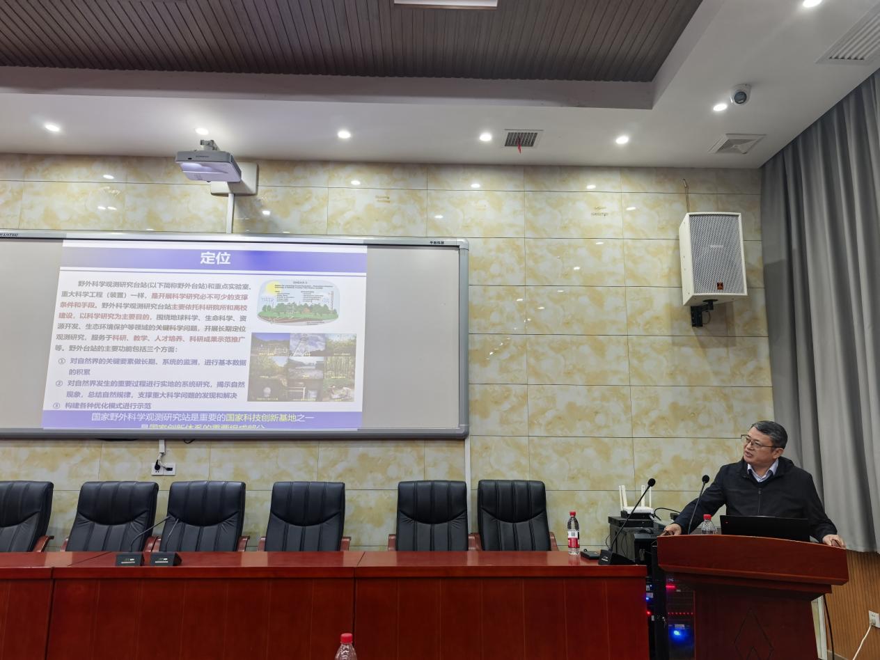 报告伊始,周文能教授介绍了野外科学观测台站对高校和科研院所开展科学研究的必要性:野外台站围绕地球科学、生命科学等领域关键问题开展的长期定点观测研究,能有效服务科研教学、人才培养等多方面的需求。
